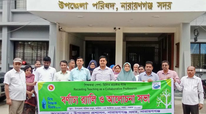 নারায়ণগঞ্জ সদর উপজেলা মাধ্যমিক শিক্ষা কার্যালয়ের আয়োজনে সদরে বিশ্ব শিক্ষক দিবস উদযাপন উপলক্ষে র্যালি ও আলোচনা সভা অনুষ্ঠিত হয়েছে। রবিবার (৫ অক্টোবর) সকালে সদর উপজেলা কার্যালয় সভাকক্ষে সদর উপজেলা