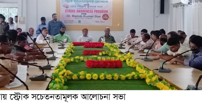 সাতক্ষীরার তালায় স্ট্রোক সচেতনতামূলক আলোচনা সভা অনুষ্ঠিত হয়েছে। উপজেলা পরিষদ হলরুমে শনিবার (২৭ সেপ্টেম্বর) সকালে অনুষ্ঠানের আয়োজন করে সাতক্ষীরা উন্নয়ন সংস্থা (সাস) ও স্কয়ার ফার্মেসি। এতে আলোচক হিসেবে বক্তব্য